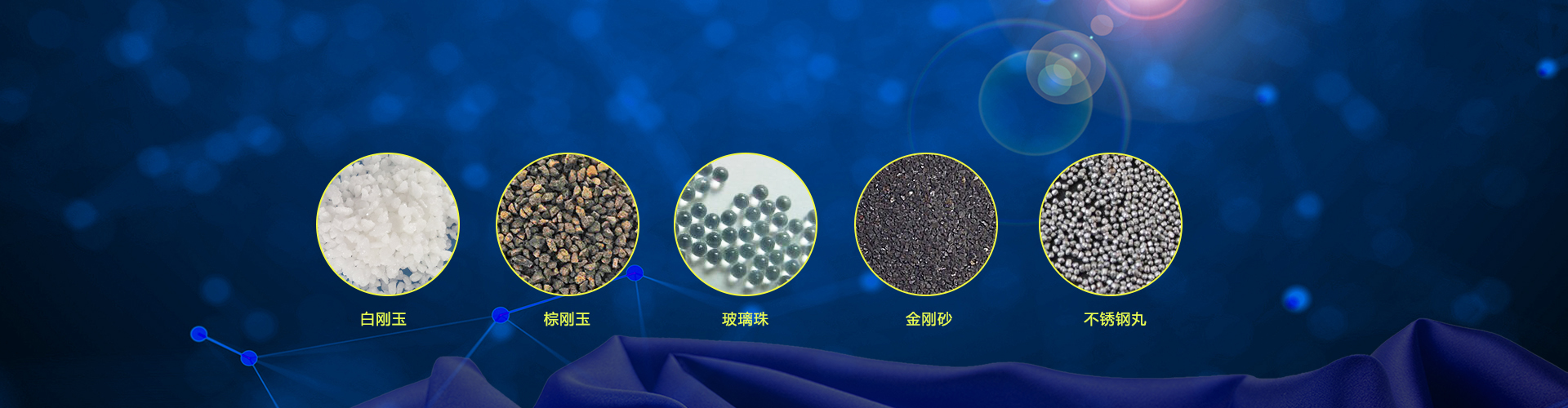 金刚砂、棕刚玉、白刚玉、绿碳化硅、陶瓷珠、不锈钢丸、玻璃珠等。