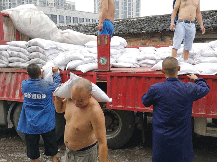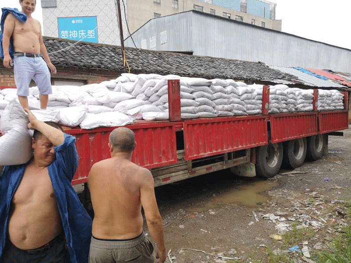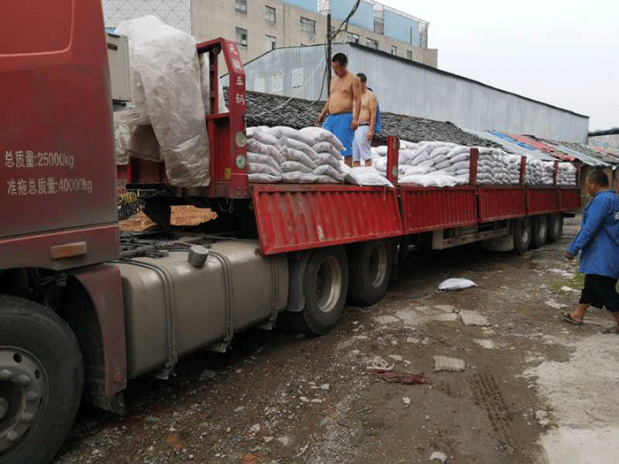 工人师傅们辛苦了,一大卡车的棕刚玉货满足各种型号客户的需求。