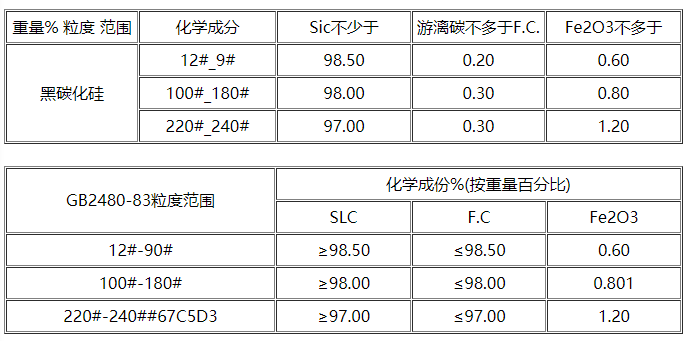 金刚砂磨料中主要成分黑碳化硅,黑碳化硅微粉,黑碳化硅磨料的化学成份: