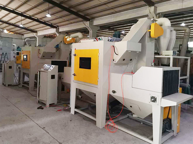 宁波百顺牌喷砂机发货给某光学股份有限公司的不锈钢转盘喷砂机调试中...